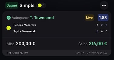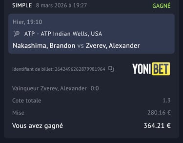 depuis 6 ans j’analyse quotidiennement les paris sportifs sur différents sports. Football, basketball, billard, hockey etc. Avec le temps et l’expérience, un constat est devenu évident : le tennis reste le sport le plus intéressant pour construire un complément de revenu grâce aux paris sportifs. Pourquoi ? La raison est simple. Deux joueurs, l’un gagne, l’autre perd. Ce qui rend l’analyse beaucoup plus claire que dans des sports avec de nombreux paramètres ou des scores imprévisibles.